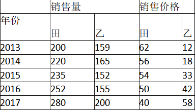 某商场甲、乙两种商品的销售量及销售价格资料(计量单位略)如下表所示。