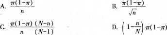当样本容量比较大时,在不重置抽样条件下,样本比例P的方差为( )