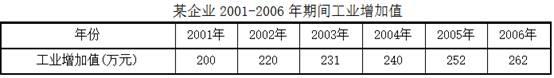 某企业2001-2006年期间工业增加值资料如下表: