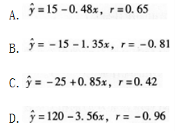 下列回归方程中肯定错误的是( )。
