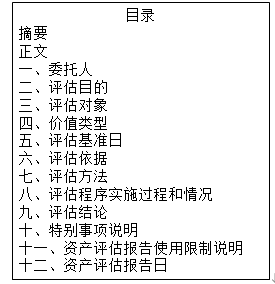 出具的资产评估报告封面、以及根据资产评估报告内容形成的目录如下: