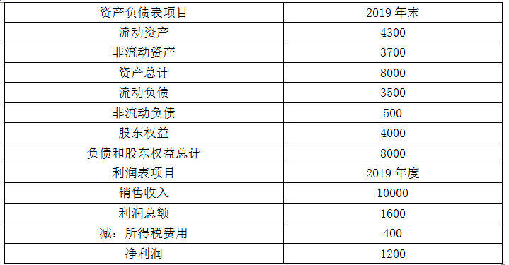 (1)甲公司2019年的主要财务报表数据:(单位:万元)