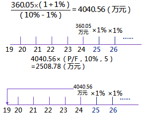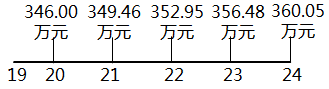 =346.00×(P/F,10%,1)+349.46×(P/F,10%,2)+352.95×(P/F,10%,3)+356.48×(P/F,10%,4)+360.05×(P/F,10%,5)
