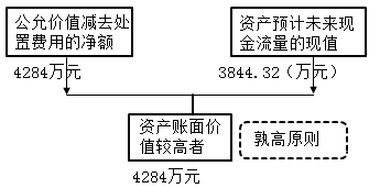 (2)通过比较,该企业生产线的公允价值小于其使用价值,根据孰高原则,该生产线的可收回金额应以其使用价值为准,即4284万元。