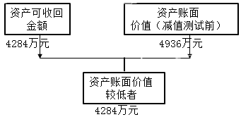 (3)因为该生产线的可收回金额为4284万元,账面价值为4936万元,账面价值大于可收回金额,所以该生产线存在减值,减值额为该生产线的账面价值与其可收回金额的差额。