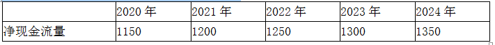 根据报表分析和市场分析,企业在2020年度通过经营活动产生的净现金流量为1150万元,并且预计未来5年净现金流如下表所示(不考虑自由现金流与现金流的差别)。