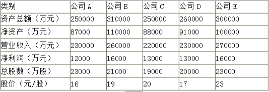 资产评估专业人员选择上市公司比较法对乙公司拟转让的9%的股权价值进行评估。初步筛选出在资产规模、业务收入规模比较接近的同行业5家公司,相关数据见表1。