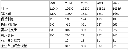 (4)计算预测期每年的企业自由现金流量