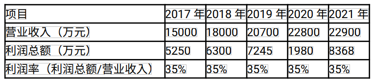 经分析,“M”商标资产具有较好的市场表现,能够给乙公司带来超额收益,可以采用超额收益法进行评估。乙公司参考“M”牌饮料产品历史销售情况,结合自身产能和市场分析。预测未来年度营业收入及利润总额见表1。