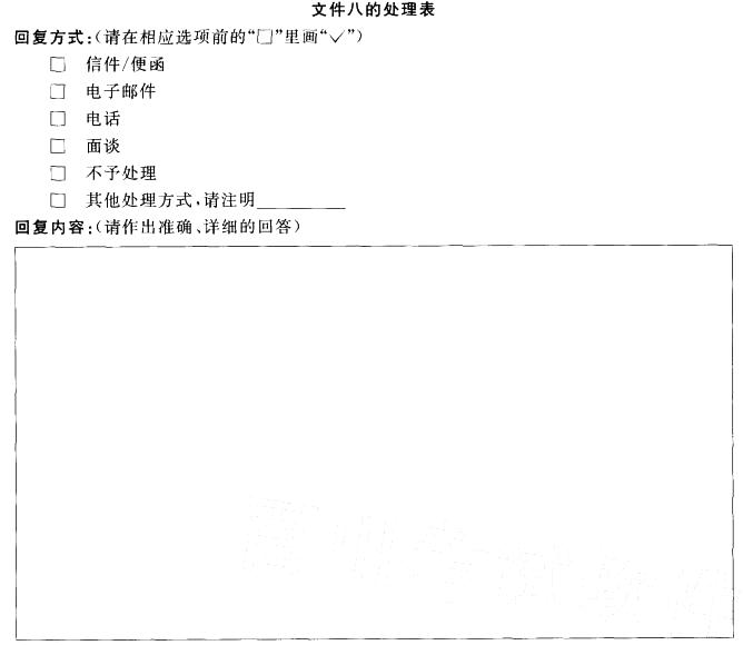 请您查阅文件筐中的各种文件,并用如下文件处理列表作为样例,给出您对每个公文的处理思路,并做出书面表述。