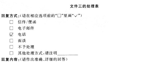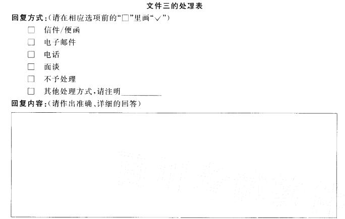 请您查阅文件筐中的各种文件,并用如下文件处理列表作为样例,给出您对每个公文的处理思路,并做出书面表述。
