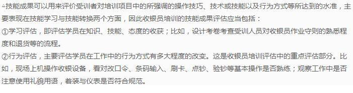 收银员培训的技能成果评估应包话哪些内容?试举例说明。