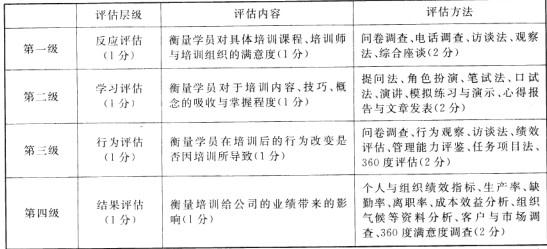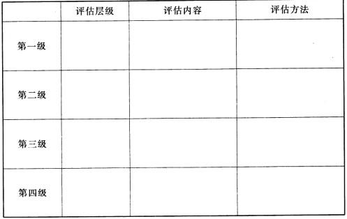 根据培训效果四级评估体系的主要内容和评估方法,填写下表。(16分)