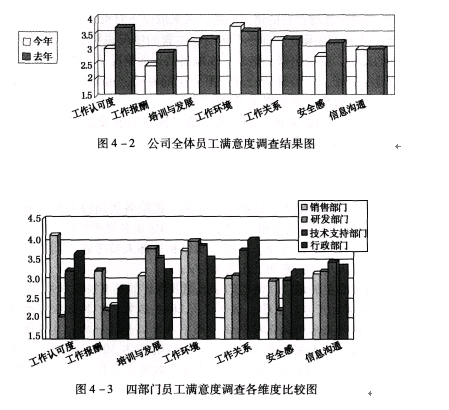(1)请根据图4—2所示的结果对该公司今年的员工满意度状况进行总体分析。