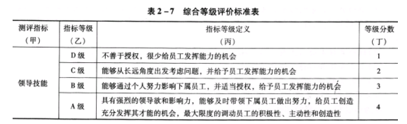 则该公司选拔人才的综合等级评价标准表,如表2—7所示。
