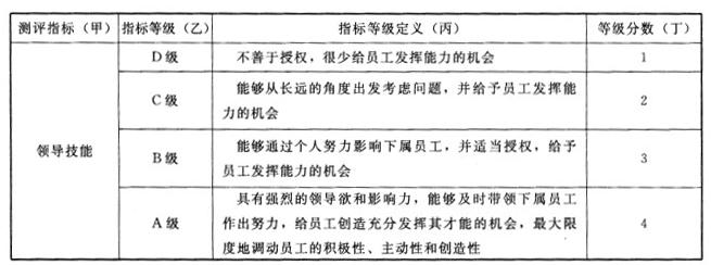 请您为领导技能指标设计一份含A、B、C、D四个等级的评分标准表。(15分)