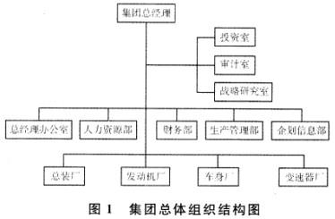 集团下属工厂除了总装厂外,还有配套生产厂,如发动机厂、车身厂和变速器厂。各生产厂实行厂长负责制,彼此相互独立,它们除了有自己的研发中心、生产中心和销售中心外,还有相应的职能机构,如计划科、厂长办公室、质量管理科等。集团赋予各生产厂尽可能大的生产经营自主权,但是,配套生产厂生产的产品主要供给总装厂使用。