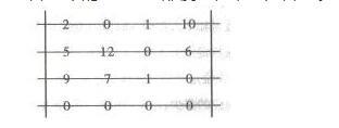 (2)对矩阵一进行行约减,即每一行数据减去本行数据中的最小数,得矩阵二。(2分)