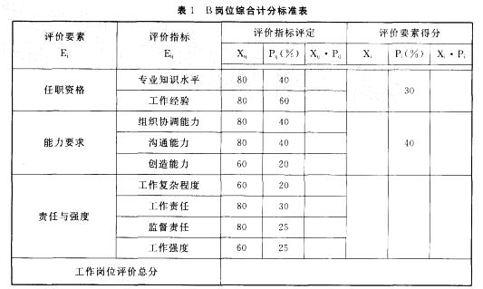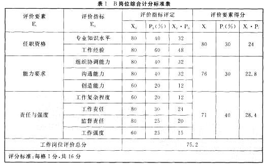 (1)填写表1,计算出B岗位各评价要素指标的得分(Xi)以及评价总分。(16分)