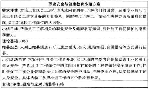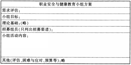 设计一份职业安全与健康教育小组方案(只需把需求评估、小组目标、招募组员和小组活动内容填入专用答题卡的相应表格内)。