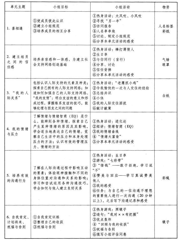 ①过程评估:在小组过程中,通过小组组员的分享和反馈,了解组员的变化;通过观察者的观察,发现组员的参与度及其变化程度。