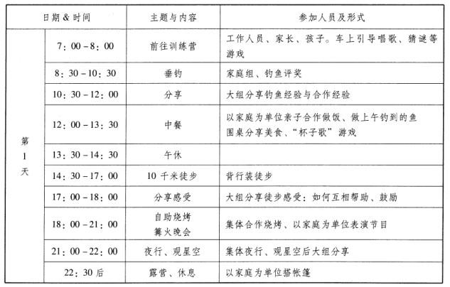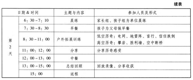2.请设计为期两天的亲子历奇辅导方案。
