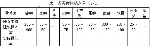 试计算李红一日各类食物摄入量,参照中国居民膳食宝塔(2007)建议每人每日各类食物适宜摄入量,填写下表,并作出评价。