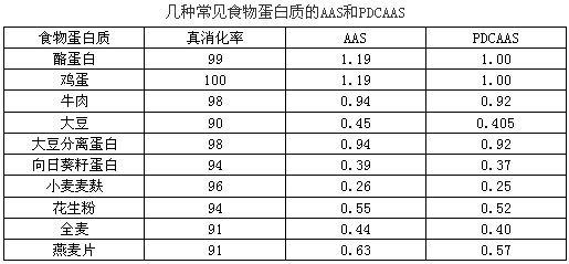 几种常见食物的蛋白质评价数据如表所示,请分析以下数据解释AAS和PDCAAS、消化率的关系和意义。