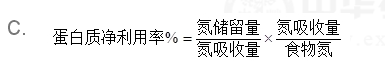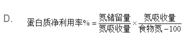 有关蛋白质净利用率的计算公式,下列选项正确的是( )。