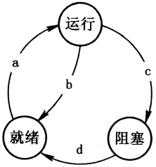 假设某计算机系统中进程的三态模型如下图所示,那么图中的a、b、c、d处应分别填写( )。