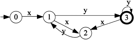 下图是一个有限自动机的状态转换图(0为初态、3为终态),该自动机可识别字符串( )(即找出从初态到终态的路径上所标记的字符序列)。