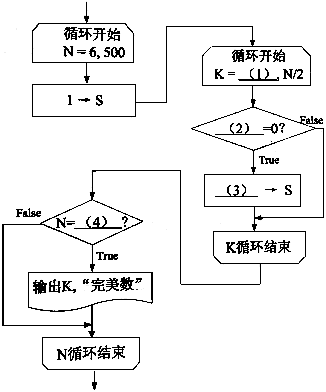 如果一个自然数N恰好等于它所有不同的真因子(即N的约数以及1,但不包括N)之和S,则称该数为“完美数”。例如6=1+2+3,28=1+2+4+7+14,所以6和28都是完美数。显然,6是第1个(即最小的)完美数。下面流程图的功能是求500以内所有的完美数。