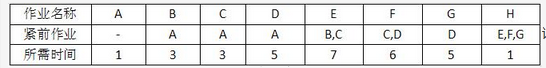 某项目有A~H八个作业,各作业所需时间(单位:周)以及紧前作业如下表: 该项目的工期为(请作答此空)周。如果作业C拖延3周完成,则该项目的工期()