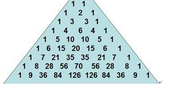 (1)(3)空为填写循环初值终值和递增值,题目中给出的格式为循环控制变量=初值,终值,递增值。按照题意,实质为求杨辉三角。如下图: