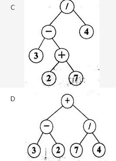与算术表达式3-(2+7)/4对应的二叉树为()