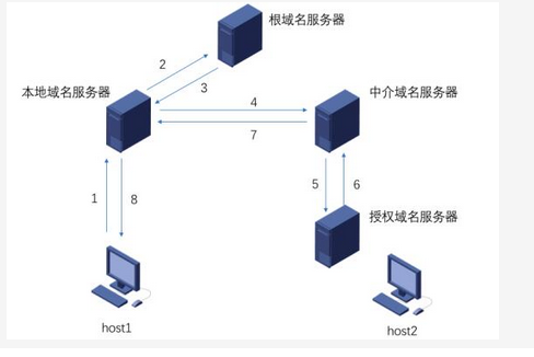 主机host1对host2进行域名查询的过程如下图所示,下列说法中正确的是()