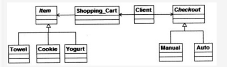 假设现在要创建一个简单的超市销售系统,顾客将毛巾、饼干、酸奶等物品(Item)加入购物车(Shopping_Cart),在收银台(Checkout)人工(Manual)或自动(Auto)地将购物车中每个物品的价格汇总到总价格后结帐。这一业务需求的类图(方法略)设计如下图所示,采用了()模式。其中()定义以一个Checkout对象为参数的accept操作,由子类实现此accept操作。此模式为(请作答此空),适用于()