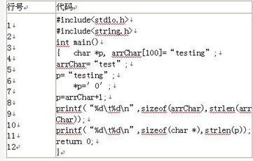 分析下面的C程序,指出错误代码(或运行异常代码)所在的行号。