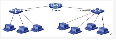 <p>如下网络拓扑中,其中Router上没有配置任何逻辑接口;所有的主机之间均可以正常通信。则此网络中有()个广播域,有()冲突