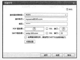 在邮件客户端上添加myname@163.com账号,设置界面如图所示。在①处应填写(请作答此空),在②处应填写()