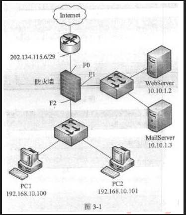 【说明】某公司的网络结构如图3-1所示,所有PC机共享公网IP地址202.134.115.5接入Internet,公司对外提供WWW和邮件服务。
