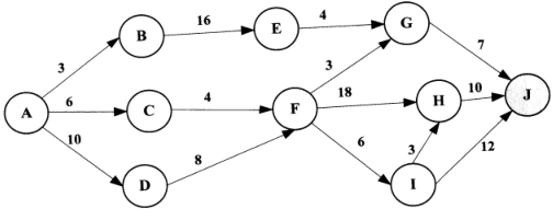 某软件项目的活动图如下图所示,其中顶点表示项目里程碑,连接顶点的边表示包含的活动,边上的数字表示活动的持续时间(天),则完成该项目的最少时间为()天。