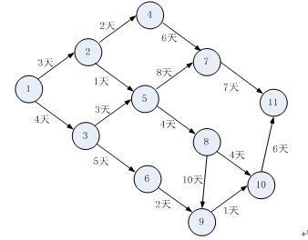 下图为某工程进度网络图,结点1为起点,结点11为终点,那么关键路径为(请作答此空),此工程最快()天完成。