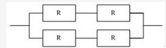 某计算机系统的可靠性结构是如下图所示的双重串并联结构,若所构成系统的每个部件的可靠度为0.9,即R=0.9,则系统的可靠度为()。