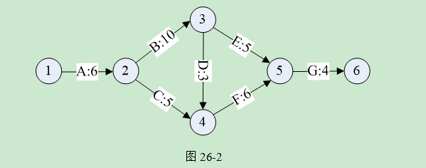 某网络工程计划图26-2如下所示,边上的标记为任务编码及其需要的完成时间(天),则整个工程的工期为()