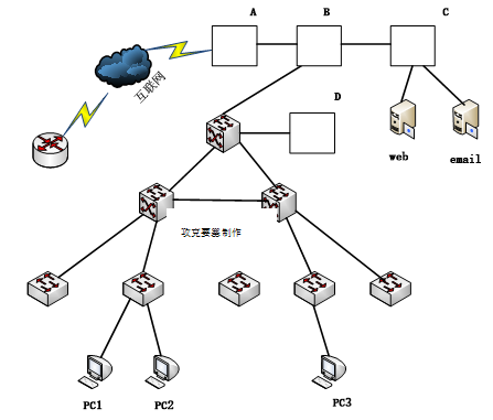 某企业网络拓扑如图1-1所示,A~E是网络设备的编号。