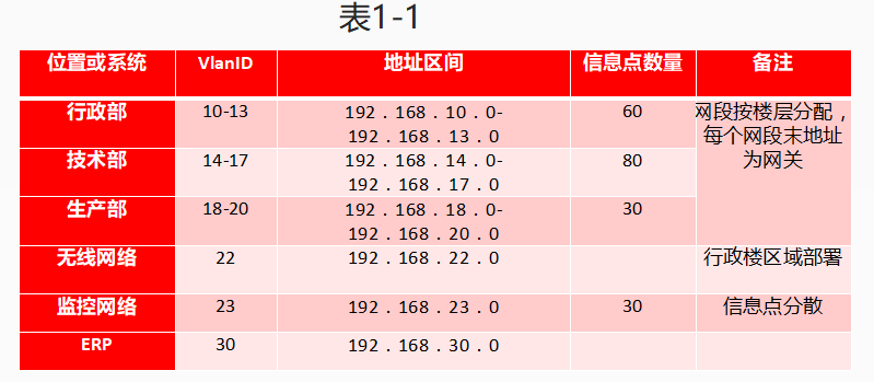 若地址规划如表1-1所示,从IP规划方案看该地址的配置可能有哪些方面的考虑