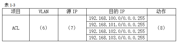 在Switch1上配置ACL禁止访客访问内部网络,将Switch1数据规划表1-3内容中的空缺项补充完整。