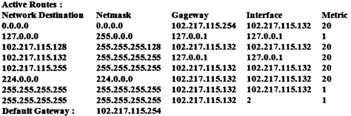 在Windows中运行routeprint命令后得到某主机的路由信息如下图所示。则该主机的IP地址为(),子网掩码为(),默认网关为(请作答此空)。