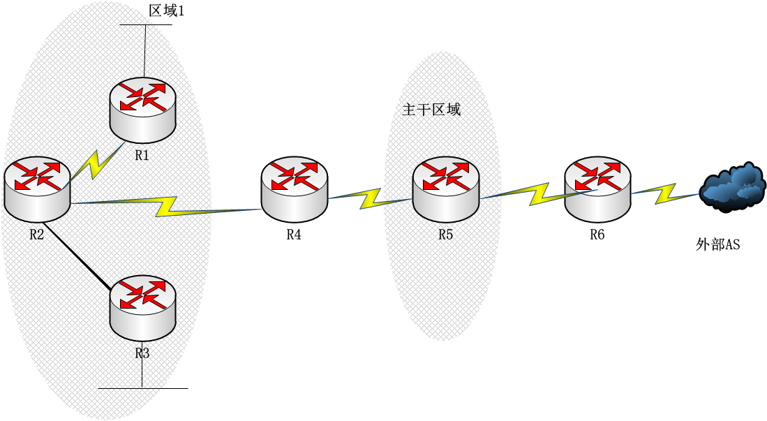 下面的OSPF网络由多个区域组成。在这些路由器中,属于自治系统边界路由器(ASBR)的是(26)